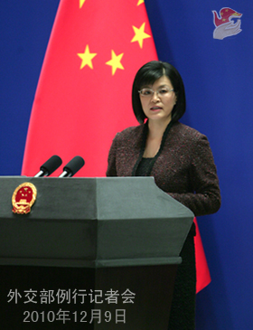 2010年12月9日,外交部发言人姜瑜主持例行记者会。