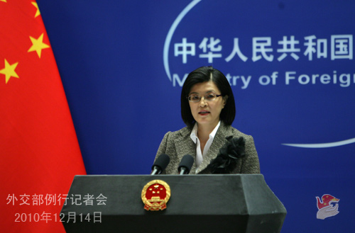 2010年12月14日,外交部发言人姜瑜主持例行记者会。