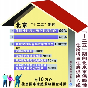 “十二五”期间,本市计划新建、收购各类保障性住房100万套,并为10万户家庭发放租金补贴。此外,本市保障性住房供应将向“以租为主”转变,公共性租赁住房将占到公开配租配售保障房数量的60%以上。这是记者从昨日“十一五”北京城市建设成就新闻发布会上了解的。