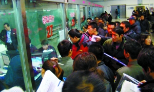 12月17日,花乡二手车交易市场,窗口挤满焦急等待的人。 本报记者 郭超 摄