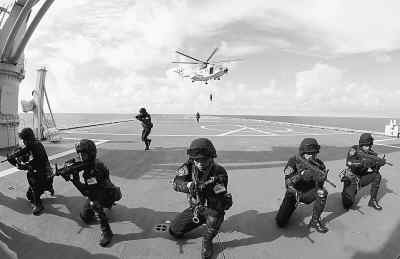 “发现可疑海盗船只!”“一级战斗部署!”“直升机起降部署!”“发射震爆弹!”“开枪警告射击!”……