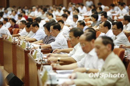 资料图:2010年6月25日,十一届全国人大常委会第十五次会议在北京人民大会堂闭幕,表决通过《中华人民共和国石油天然气管道保护法》和《全国人大常委会关于修改中华人民共和国行政监察法的决定》以及通过了多项任免案。 中新社发 盛佳鹏 摄