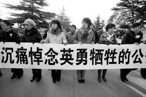 市民自发送别四英烈 记者 龚辉 摄