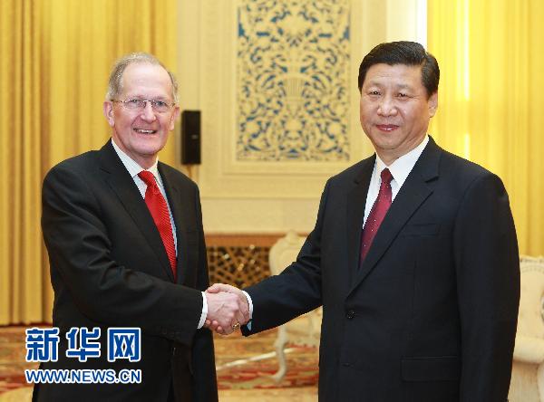 1月10日,国家副主席习近平在北京人民大会堂会见来华访问的第65届联合国大会主席约瑟夫·戴斯。新华社记者鞠鹏摄