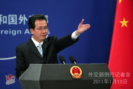 2011年1月13日,外交部发言人洪磊主持例行记者会。