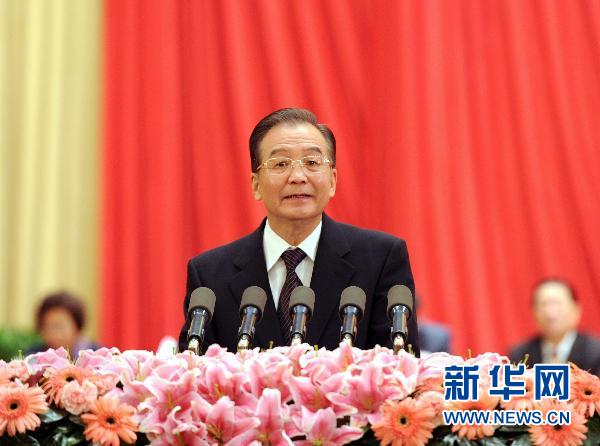 中共中央政治局常委、国务院总理温家宝在国家科技奖励大会上发表讲话。