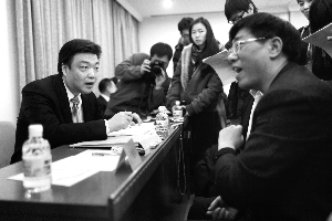 15日晚,北京市常务副市长吉林接受代表的问询,北京市发改委、市科委等7个委办局在北京会议中心“摆摊”接受代表委员咨询问政。本报记者 赵亢 摄影报道