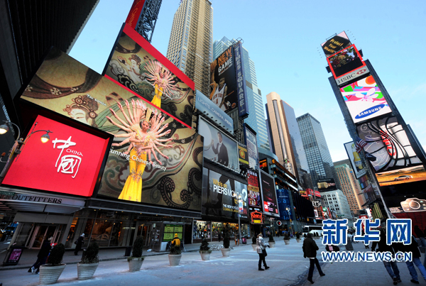 当日,《中国国家形象片——人物篇》开始在纽约时报广场大型电子显示屏上以每小时15次、每天共300次的频率播出。至2月14日,中国国家形象片共计将播放8400次。《中国国家形象片——人物篇》中包括了杨利伟、姚明等各领域优秀代表以及普通百姓,旨在向全世界展示立体的中国。