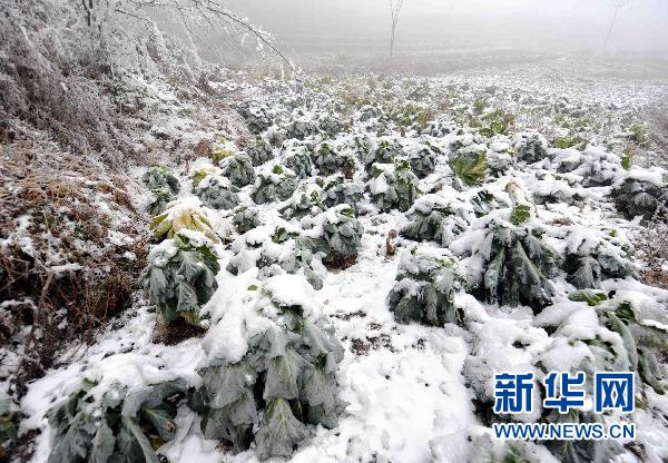 资料图片:昭通市大关县老街村被冻坏的大片蔬菜。近期,受强冷空气影响,云南昭通市大部分地区遭受冰雪灾害,受灾群众达43万人,10万人饮水困难,农业、电力、交通等部门受灾严重。新华社记者杨宗友摄