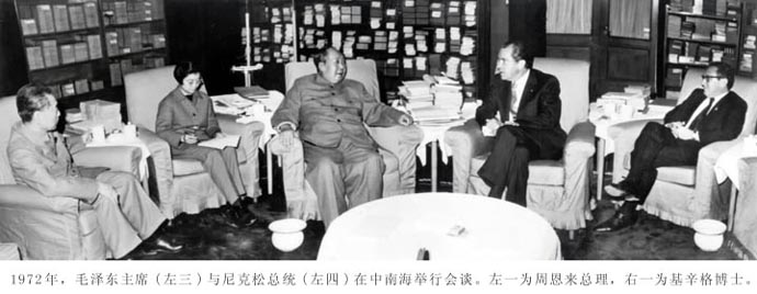 应中华人民共和国总理周恩来的邀请,美利坚合众国总统理查德·尼克松自一九七二年二月二十一日至二月二十八日访问了中华人民共和国。陪同总统的有尼克松夫人、美国国务卿威廉·罗杰斯、总统助理亨利·基辛格博士和其他美国官员。