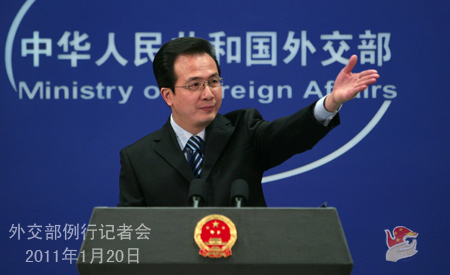 外交部发言人洪磊今日主持例行记者会,就胡锦涛主席访美、第十二次中日安全对话等回答记者提问。