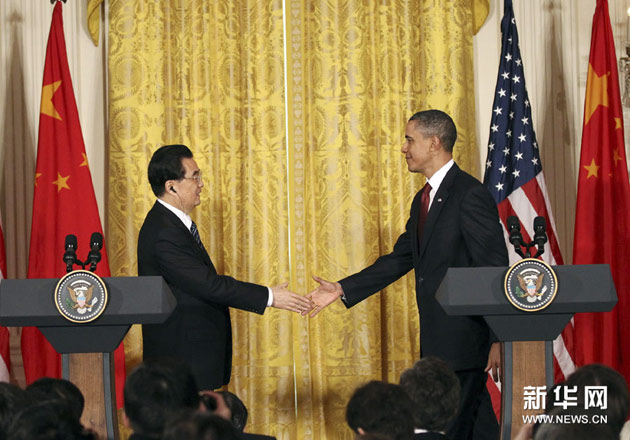 1月19日,中国国家主席胡锦涛同美国总统奥巴马在白宫共同会见记者。新华社记者 兰红光 摄