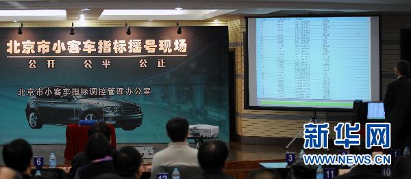 1月26日,摇号现场的投影屏幕上显示摇号结果。当日上午,北京首轮机动车购车摇号落定,1.76万名申购者成为幸运儿,在18.7万人的竞争中获得了购车指标。此举标志着北京进入“购车摇号时代”,今后每一名购车者都需经过摇号大关。尽管管理部门为追求摇号的公平性殚精竭虑,设计了全套计算机方案,摇号过程也全程直播,但10.6:1的中签率使网友对“北京摇号细则”的公平性和普惠性更加关注,许多网民更是提出了关于如何解决无效申请、作废指标怎么处理、长时间摇不到号怎么办、已拥有多辆车的家庭是否还有申请资格等4大质疑。新华社记者李文摄