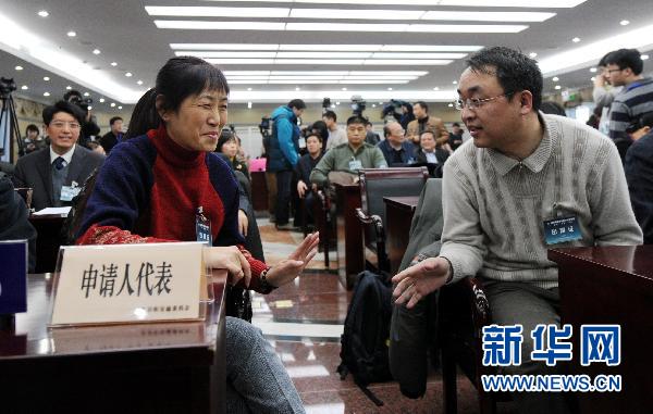 1月26日,申请人代表在摇号开始前交谈。当日上午,北京首轮机动车购车摇号落定,1.76万名申购者成为幸运儿,在18.7万人的竞争中获得了购车指标。此举标志着北京进入“购车摇号时代”,今后每一名购车者都需经过摇号大关。尽管管理部门为追求摇号的公平性殚精竭虑,设计了全套计算机方案,摇号过程也全程直播,但10.6:1的中签率使网友对“北京摇号细则”的公平性和普惠性更加关注,许多网民更是提出了关于如何解决无效申请、作废指标怎么处理、长时间摇不到号怎么办、已拥有多辆车的家庭是否还有申请资格等4大质疑。新华社记者李文摄