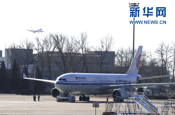 1月31日11时30分,国航派出赴埃及首都开罗的空客A330客机准备出发。新华社发(马儒壮 摄)