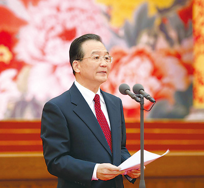 2月1日,中共中央、国务院在北京人民大会堂举行2011年春节团拜会。这是中共中央政治局常委、国务院总理温家宝在团拜会上讲话。新华社记者 黄敬文摄