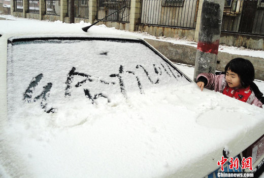 2月9日下午1点30分许,占据中国四分之一粮仓的河南喜降2011年第一场雪,近一个小时大地银装素裹,该地区已连续三个多月未降雨雪,这场雪虽然来得比往年晚,但对农田旱情有所缓解。中新社记者 王中举 摄