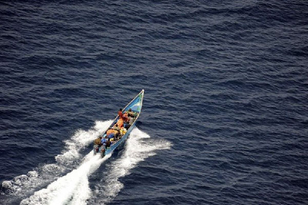 14时30分,嘉宁山轮位于0645.7N/06925.7E,值班二副发现正船头7海里处有一艘航向不稳定的船舶正在逼近。海盗!高度警惕的值班船员们的第一个反应便是遇到海盗了。在极短的时间里,判断出这是一艘海盗母船,正快速向嘉宁山轮驶来。情况危急,船长周泽彬立即拉响了保安和遇险警报,全船各就各位,严阵以待。