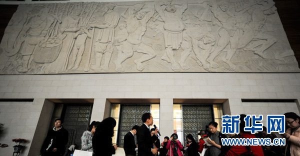 这是国博西大厅的浮雕“愚公移山”(2月16日摄)。经过3年多改扩建的国家博物馆将于4月1日重新开馆迎客,届时,国博将举办大型主题展览《启蒙的艺术》。 新华社记者 王建华 摄