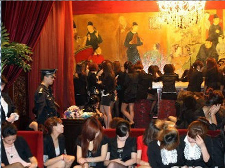 资料图片:2010年5月11日晚,警方突击检查“名门夜宴”,查获199名有偿陪侍人员。