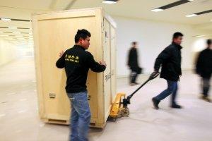 虽然只有30个木箱,但为了文物的安全,整个搬运过程进展较慢。于成龙介绍,文物会直接搬到3层展厅,并在今天开箱、检查、交验。
