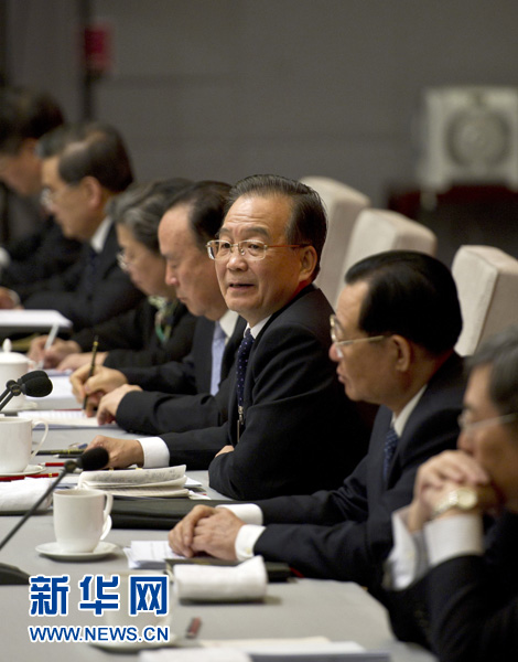 3月7日,中共中央政治局常委、国务院总理温家宝参加全国政协十一届四次会议经济、农业界政协委员联组讨论。 新华社记者李学仁摄