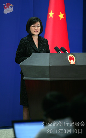 2011年3月10日,外交部发言人姜瑜主持例行记者会。