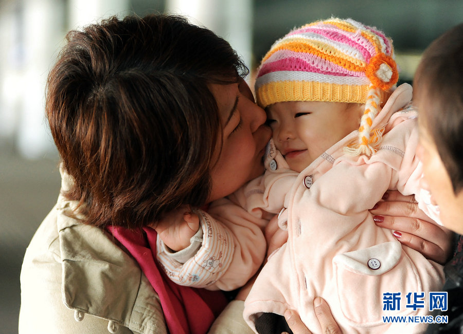 3月16日,撤离日本的中国公民亲吻自己多日不见的孩子。当日,从日本撤离回国的1900余名中国公民陆续抵达大连周水子国际机场。大连周水子机场边检站启动应急预案24小时备勤,开通日本归国公民入境特别通道,为其快捷通关与亲人团聚提供便利。大连是中国东北地区通航日本的重要门户。日本大地震后至3月16日,共有4000余名中国公民从日本入境大连回国。 新华社发(李雨泽)