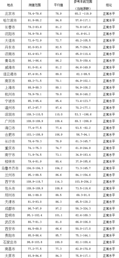 为让公众更直观的了解监测结果,环保部从15日起,除表格式的报告外,以“汇总图”的形式发布全国省会城市和部分地级市辐射环境自动监测站实时连续空气吸收剂量率监测值。