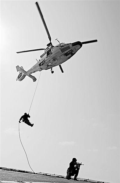 特战队员正在进行直升机滑降训练。特约记者 方立华摄