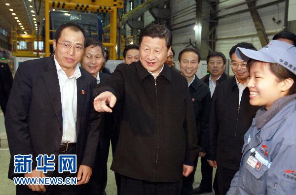 3月20日至23日,中共中央政治局常委、中央书记处书记、国家副主席习近平在湖南调研。这是3月21日,习近平在株洲市南车株洲电力机车有限公司了解企业生产经营情况。 新华社记者鞠鹏摄