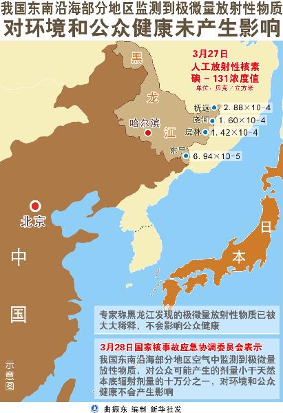 图表:我国东南沿海部分地区监测到极微量放射性物质 新华社发