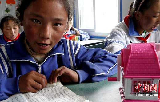 资料图:2010年9月,在当地小学,学生们在重建的教室里上课。中新社记者 钱兴强 摄