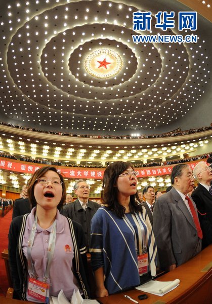 4月24日,庆祝清华大学建校100周年大会在北京人民大会堂举行,党和国家领导人胡锦涛、吴邦国、温家宝、贾庆林、习近平、李克强等出席大会。新华社记者 李涛摄
