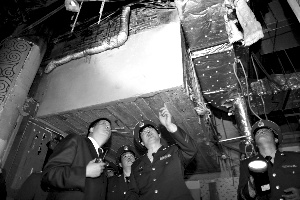 4月25日,海淀燕山大饭店,消防人员突击检查涉嫌违规改建的地下一层。当日,针对大兴18死的重大事故,全市开展消防隐患排查治理。记者 浦峰 摄