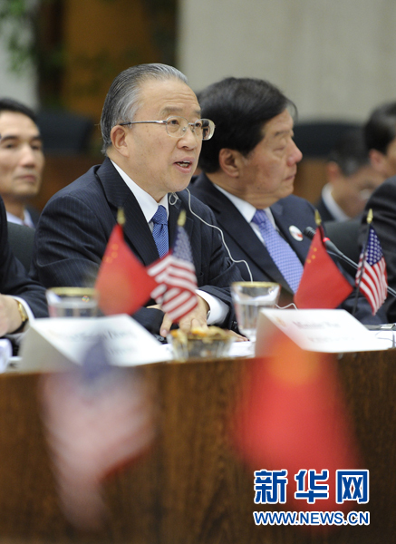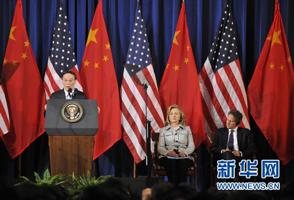 第三轮中美战略与经济对话9日在美国首都华盛顿开幕。中国国家主席胡锦涛的特别代表国务院副总理王岐山、国务委员戴秉国与美国总统奥巴马的特别代表国务卿希拉里·克林顿、财政部长蒂莫西·盖特纳共同主持对话。新华社记者 王丰丰 摄