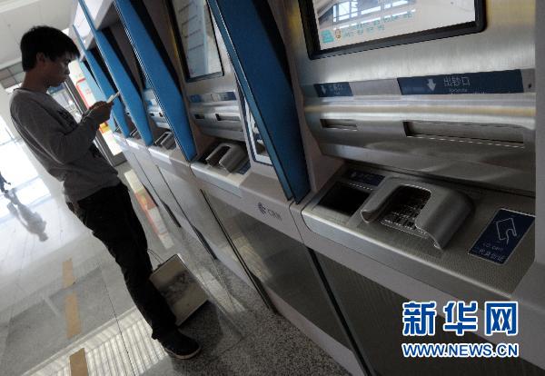 资料图:5月10日,装有二代身份证识别设备的实名售票机在铁路上海虹桥站安装就绪。据介绍,上海实名制购买动车车票将于本月启动,乘客需携带二代身份证等有效证件购票、进站、乘车。 新华社发(钮一新 摄)