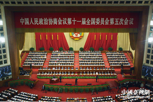 3月3日下午,中国人民政治协商会议第十一届全国委员会第五次会议在北京人民大会堂开幕。(中国台湾网 于斯文 摄)