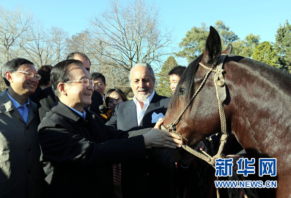 温家宝受到农庄主莫内塔及当地民众的热烈欢迎。他饶有兴趣地了解农场的经营情况和牲畜的品种,观看了阿根廷民族文化表演。随后,温家宝在农场与阿方主管农业的官员和农牧界人士进行了座谈。