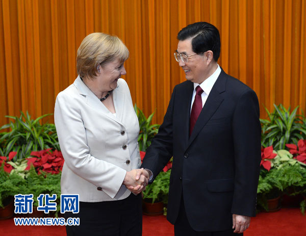 8月30日,中国国家主席胡锦涛在北京人民大会堂会见德国总理默克尔。新华社记者 刘建生 摄
