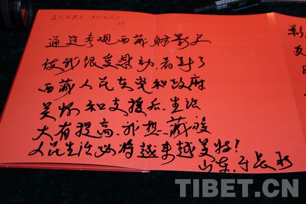 台北的一位林先生看完摄影展后挥笔写下“西藏好地方!”几个大字作为留念。