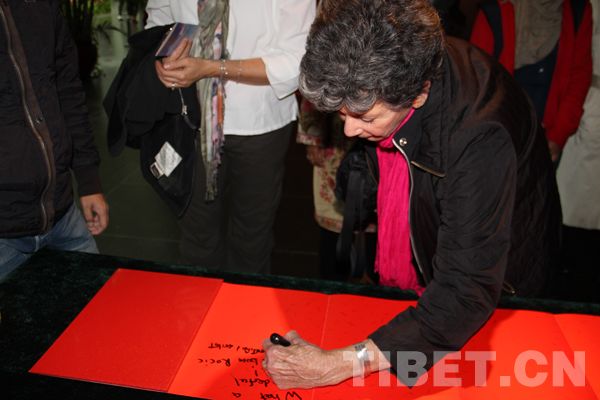 72岁的于长水老人来自山东,这位精神矍铄的老人十分健谈,如果不是他自己告诉我们,记者很难相信这是一个已经年过古稀的老人。于长水老人思维敏捷,和作者的交谈中他时时能让作者感到他不仅关心西藏,关心藏族同胞,而且他还关心这个国家的发展和命运,这种言语中流露出的无私和奉献精神让人感动。于长水老人在认真参观完摄影展后在留言簿上写到“通过参观西藏摄影展使我深受感动,看到了西藏人民在党和政府的关怀和支援下,生活大有提高,我想藏族人民的生活必将越来越美好!”。留言充分体现出一位普通老人的藏族情怀和对西藏的美好祝愿。