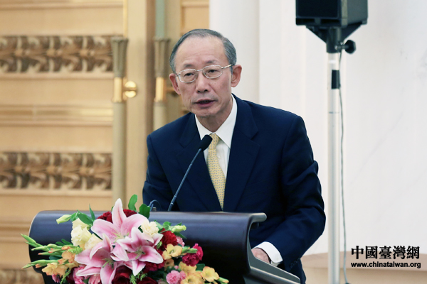 中共中央台湾工作办公室、国务院台湾事务办公室与海峡两岸关系协会26日下午在人民大会堂举行“九二共识”20周年座谈会。图为峡两岸经贸交流协会会长王辽平在座谈会上发言。(中国台湾网 陈佳慧 摄)
