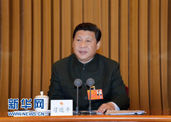 3月11日,中共中央总书记、中共中央军委主席习近平出席十二届全国人大一次会议解放军代表团全体会议并发表重要讲话。李刚 摄