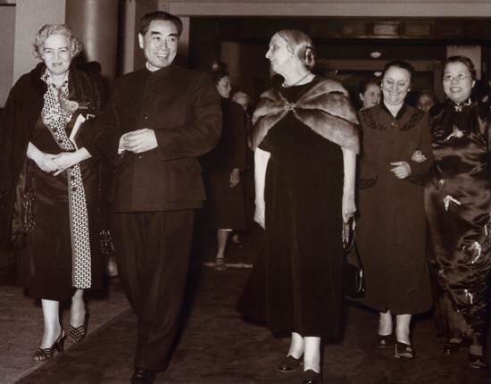 图为1956年,邓颖超(右1)和周恩来同出席国际民主妇女联合会理事会的客人在一起。