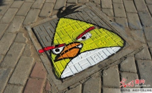 近日,安徽省合肥市高新区城管局和蜀麓社区服务中心联合大学生志愿者对辖区蜀南庭苑商业街进行环境美化,来自安徽大学艺术系的大学生志愿者们将唐老鸭、猫和老鼠、愤怒的小鸟等动漫形象手绘到窨井盖、树洞、公益广告牌上,借此美化环境,倡导文明言行。(徐勇摄/光明图片)