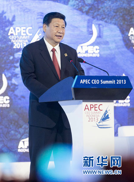 10月7日,国家主席习近平在印度尼西亚巴厘岛出席亚太经合组织工商领导人峰会,并发表《深化改革开放 共创美好亚太》的重要演讲。新华社记者 王晔 摄