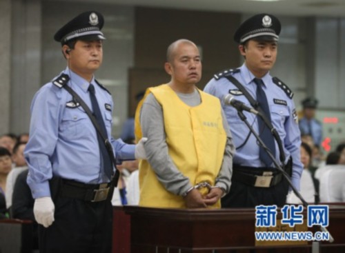 9月27日,王书金在法庭接受宣判。当日,王书金故意杀人、强奸上诉案二审在河北邯郸市中级人民法院宣判。河北省高级人民法院依法裁定驳回上诉人王书金上诉,维持一审判处王书金死刑、剥夺政治权利终身的判决。新华社发(丁立新 摄)