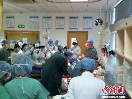 图为医院抢救伤者现场。陈博文摄