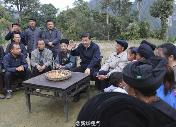 据新华社“新华视点”微博报道,座谈会上,村干部和村民说话不绕弯子,纷纷建议:这里风景好,希望政府帮助改造房子、发展旅游。习近平说,各级党委都很重视扶贫,还要更重视。到中国共产党成立100年时全面建成小康,要使贫困地区也好起来,要有很大改变,这样全面小康才能保障实现。